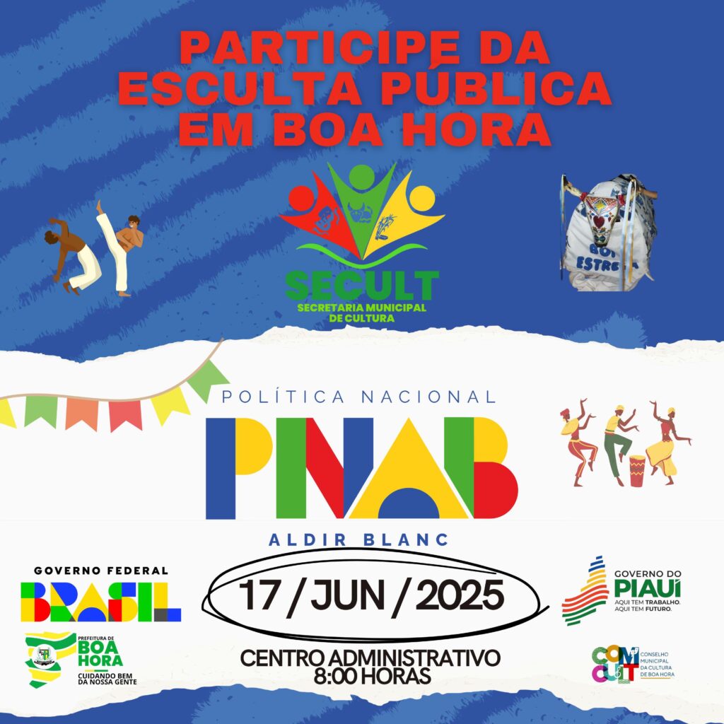 2ª Etapa da Política Nacional Aldir Blanc de Fomento à Cultura (PNAB) Atenção, artistas de Boa Hora do Piauí! 2ª Etapa da Política Nacional Aldir Blanc de Fomento à Cultura (PNAB) Nesta terça-feira, 17 de junho de 2025, a cidade de Boa Hora do Piauí será palco de uma importante audiência pública para discutir a […]