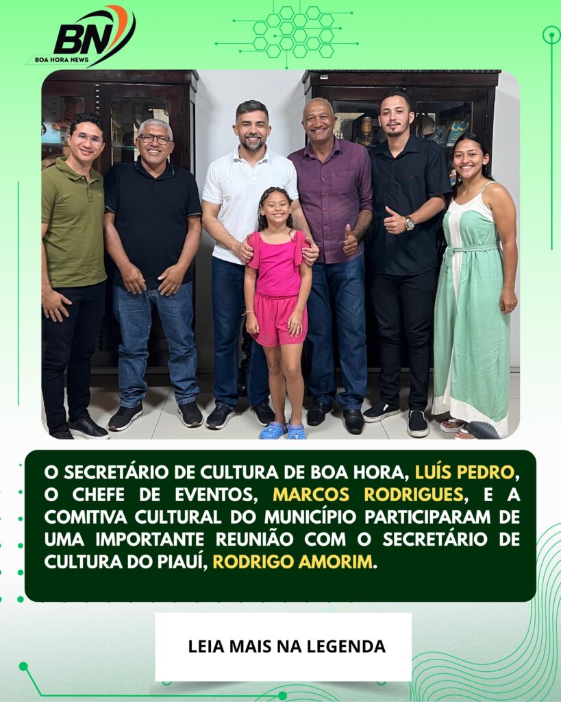 O secretário de Cultura de Boa Hora, Luís Pedro, o chefe de Eventos, Marcos Rodrigues, e a comitiva cultural do município participaram de uma importante reunião com o secretário de Cultura do Piauí, Rodrigo Amorim.📌 Em pauta: a solicitação da construção de um Reisódromo, uma arena dedicada às apresentações de reisado, fortalecendo as tradições culturais […]