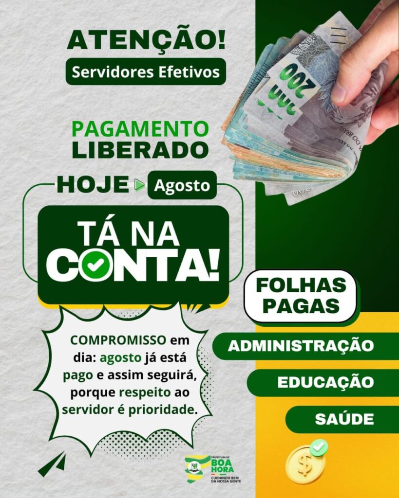 Compromisso em dia: Agosto já está pago e assim seguirá, porque respeito ao servidor é PRIORIDADE.